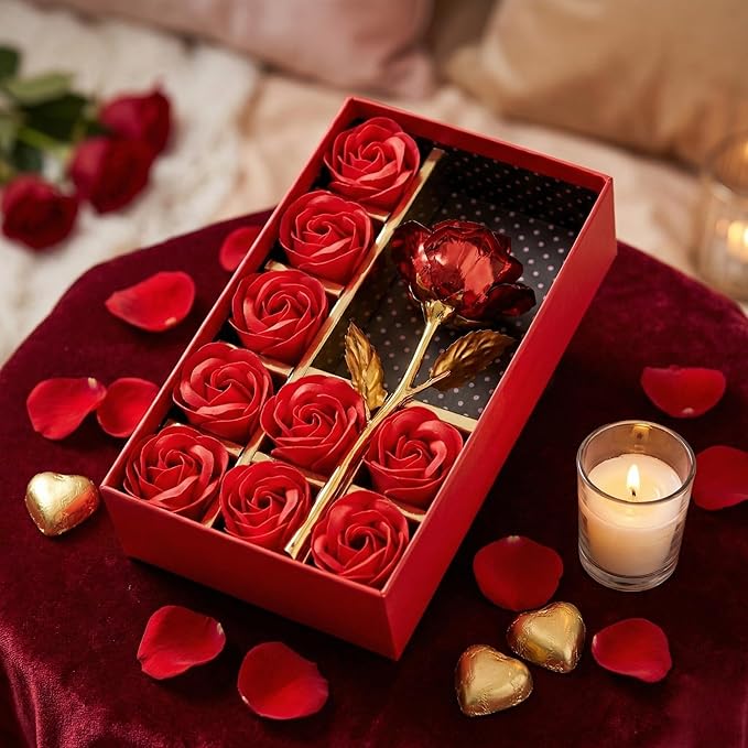 eCraftIndia Artificial Red Rose Gift Box | Rose with 9 Scented Roses | Valentine Gift for Girlfriend Boyfriend Husband Wife Her Him | Valentine Decoration Items | Rose for Valentine's Day